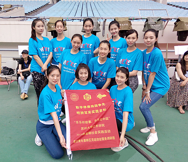 2014年,四年一度的世界性盛会——青年奥林匹克运动会即将在8月16日在中国南京再次拉开帷幕。早在6月份的时候,青奥会开幕式的导演及编导人员就已经来到苏州大学艺术学院,选拔开幕式表演部分负责引导员工作的同学们。经过了在学校一个月的基本训练,最终艺术学院的李伊明等11名同学入选参加最后开幕式引导员工作,同时,她们也正式组成了艺术学院暑期社会实践南京青年奥林匹克运动会服务调研团。
