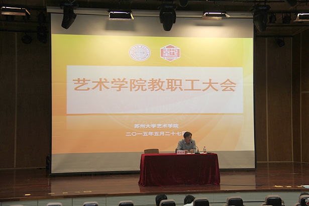 2015年5月27日13:30,艺术学院教职工大会在601二楼多功能厅举行,会议由苏州大学副校长、艺术学院院长田晓明主持,艺术学院全体教职工出席了本次会议。会议的主要内容有两方面,一是票选艺术学院学术委员会委员;二是做好全体教职工的思想指导工作。