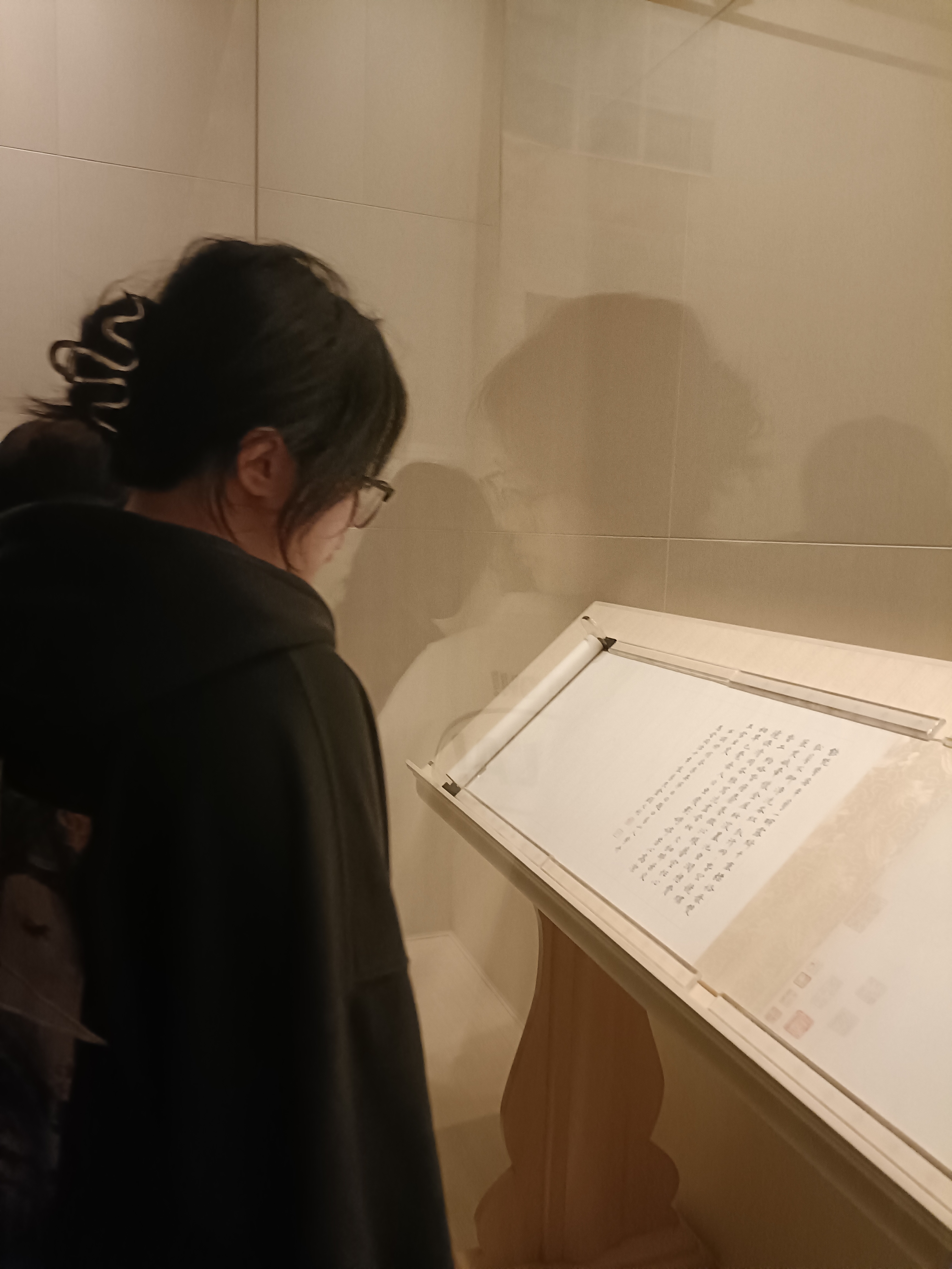 为了让同学们更好地理解展品,王照宇老师为同学们讲解展品的历史与内涵,使同学们对展品的历史背景、艺术特点有了更深入的了解。更是现场观摩了徐渭的真迹《五月莲花图轴》与文徵明的《行书咏文信国事卷》。许多同学表示,此次参观让他们受益匪浅,对艺术产生了更浓厚的兴趣。