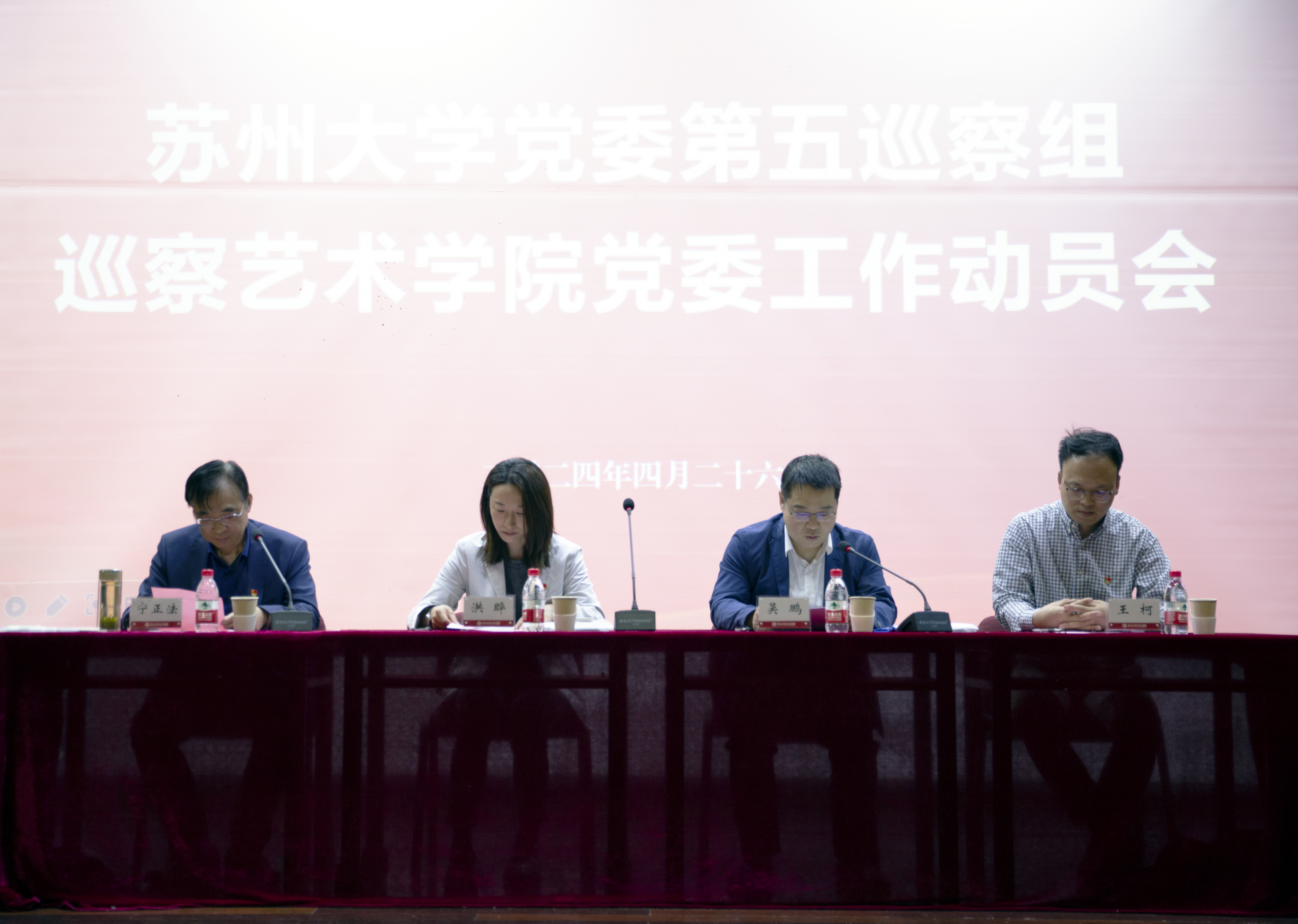 根据苏州大学校党委统一部署,苏州大学第十三届党委第三轮巡察第五巡察组于4月26日下午在艺术学院601号楼多功能厅召开巡察工作动员大会。巡察组组长洪晔、副组长吴鹏,联络员李伟文,成员刘子静、孔凡立、杨凤珠、艺术学院党政班子领导、学院全体教职工参加此次动员大会。艺术学院党委书记宁正法主持会议。