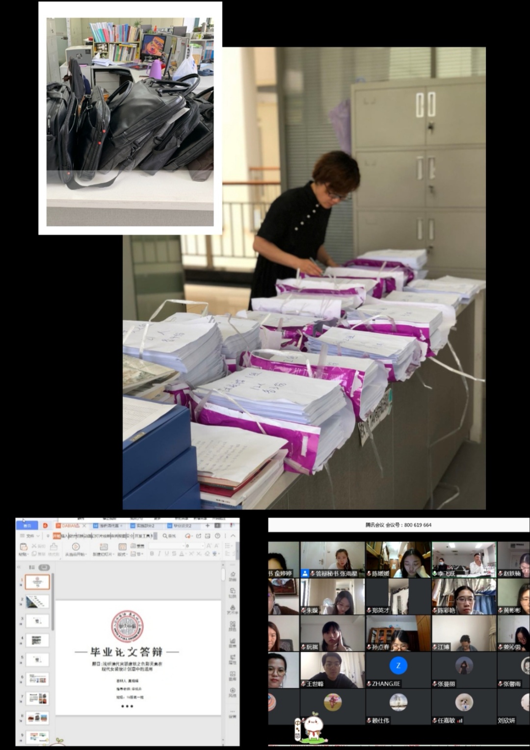 教学督导徐百佳老师谈到:“我参加了艺术学院14.15日两天的毕业论文答辩。14号的16国画2组和16服装设计2组,是由老师集中于学校在腾讯会议线上进行论文答辩,15日的16产品染织设计1组和16产品工业设计1组,是老师各自在腾讯会议室进行毕业论文答辩。答辩的总体感觉是在特定的网络环境下师生交流,老师对每位学生的论文陈述与文章的提问都比较到位,贴切中肯,学生论述积极自信,也能积极回答老师的提问。指导老师之间对每位学生的论文情况的沟通也很认真,较客观地作出评定,需要修改的不当之处为同学作出了指点。总体上老师能掌控论文答辩的顺利进行,师生共同完成了一场在非常时期有庄重仪式感的论文答辩会。可喜可贺!最后,这次线上答辩的顺利进行离不开各组的秘书同学,感谢他们的努力与付出!”