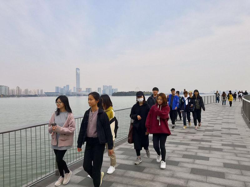 走了将近一个多小时后,部分同学感觉到些许劳累,但依然坚持前行,经过了湖畔著名的船型酒店中茵皇冠,又向圆融中心方向逼近。到达了最后的目的地,大家在终点合了照,给这次拓展活动一个完美的结束。