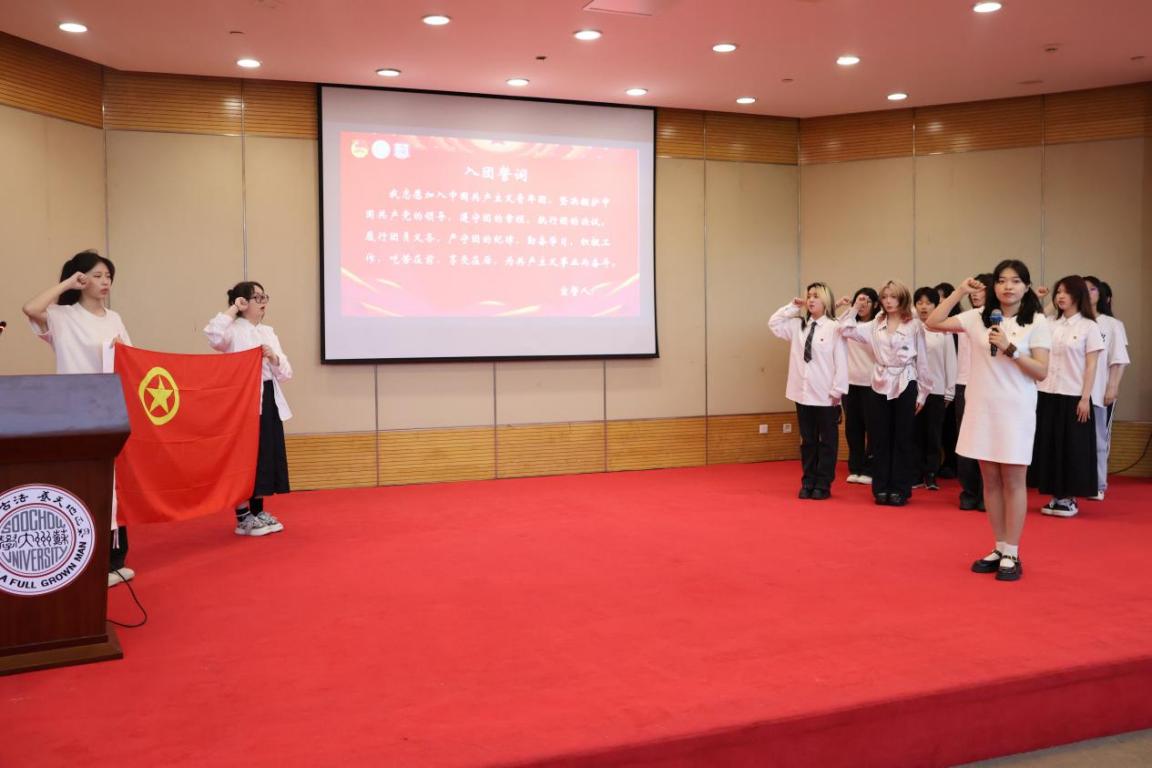 随后,学院兼职团委副书记王译函带领集体重温入团誓词。誓言铿锵、青春无悔,每一句誓言都凝聚着我们对共青团的坚定信仰。我们要以团旗为指引,以团歌为激励,以团章为准则,时刻不忘共青团坚定不移跟党走的初心,要牢记共青团为党和人民不懈奋斗的使命,践行社会主义核心价值观,为实现中华民族伟大复兴的中国梦而努力奋斗!