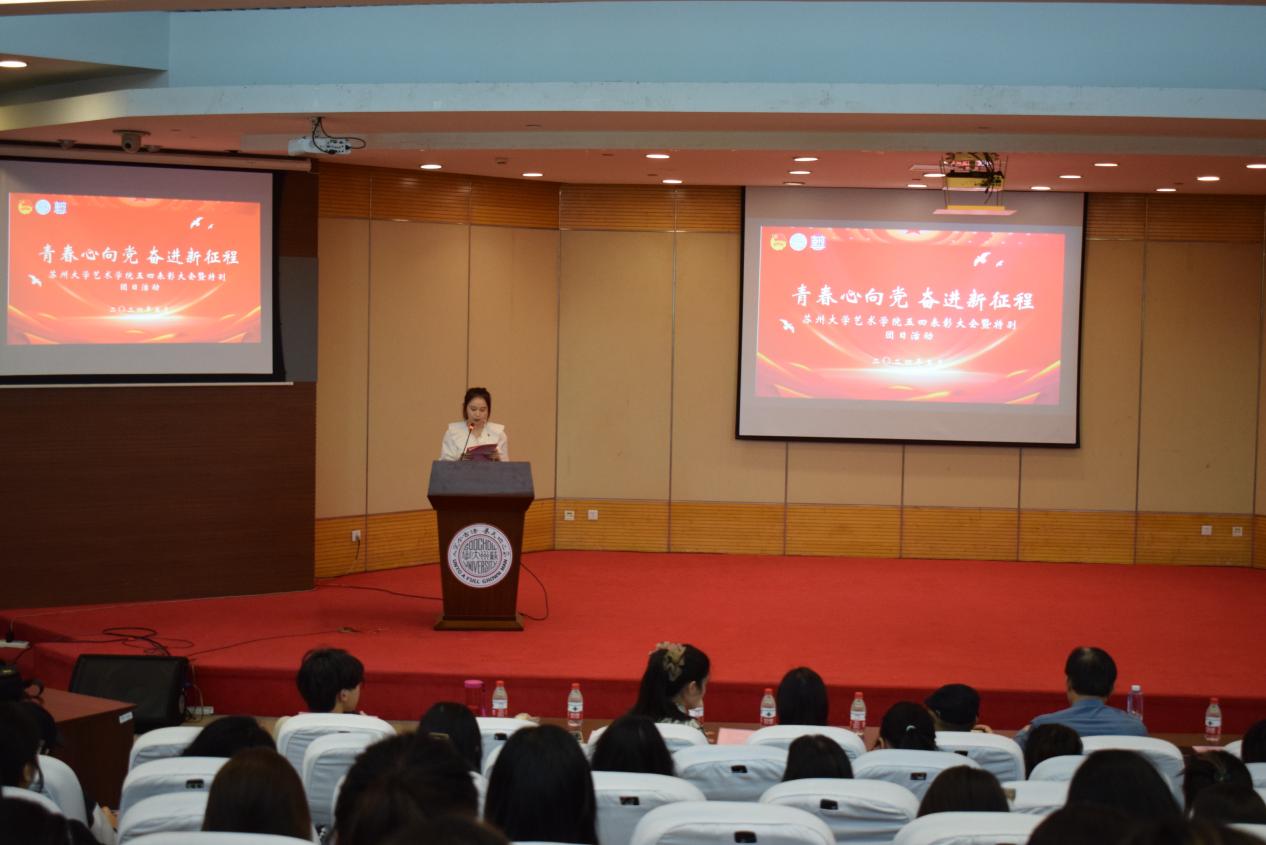 为深入学习贯彻习近平新时代中国特色社会主义思想和党的二十大精神,进一步弘扬五四精神,表彰先进、树立典型。5月15日下午,我院在独墅湖校区炳麟图书馆报告厅召开了苏州大学艺术学院“青春心向党,奋进新征程”五四表彰大会暨五四特别团日活动。艺术学院党委书记宁正法,党委副书记徐美华,党委副书记、副院长张洁,教学督导、关工委委员、苏州大学工艺美术研究所所长袁牧,本科生、研究生辅导员,青马工程学员、全体学生骨干、团支书及各班班委出席活动。活动由学院兼职团委副书记祖溢主持。