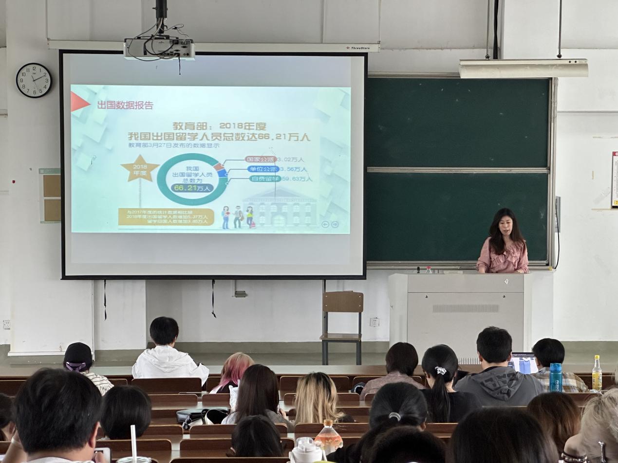 讲座伊始,邓老师从国内升学、培训就业、出国留学三个维度,直观介绍了毕业后各项规划或选择的基本情况,并通过图表数据报告直观展示其竞争力,从资源优势为切入点,进行了出国留学这一选择的详细阐述。在如何选择海外院校这一问题上,邓老师亦给出了细心建议和讲解。