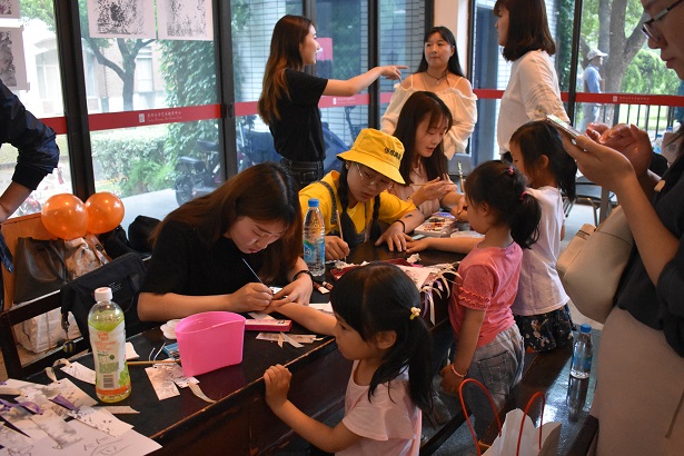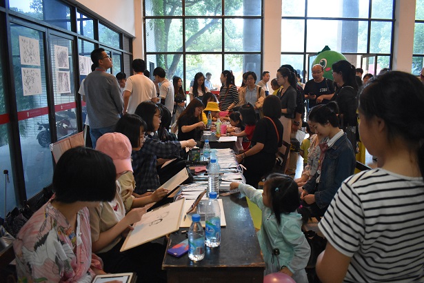 上午9点半,学生会主席李彬鑫带领志愿者们一齐来到校本部,组织志愿者们搬运材料,布置场地并安排活动。现场活动形式分为素描速写、人体彩绘、创意实验水墨书签制作与作品展示四个模块。活动期间,志愿者为返校校友绘画肖像、给返校校友的小孩们绘制人体彩绘并提供了尝试水墨画绘制的机会。众多返校校友热情的参加此次的画廊活动,积极配合志愿者的工作,并对此次活动的开展给予了高度的评价,活动现场气氛活跃。