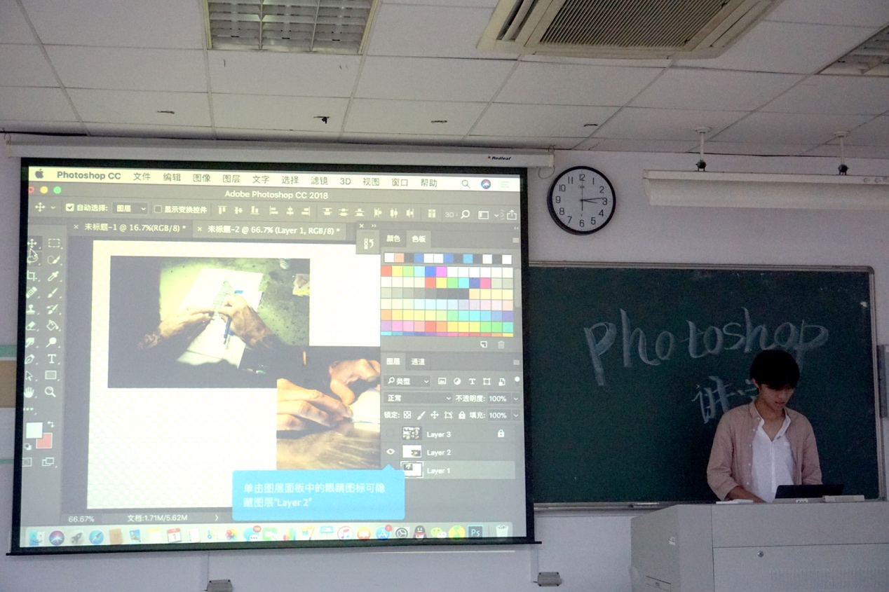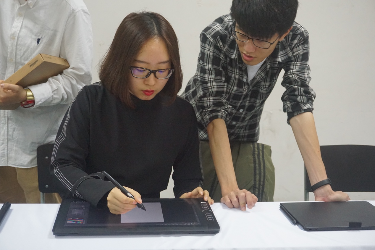 这次ps基础工具使用交流活动的内容主要是邀请高年级学生代表给17级新生讲解ps的基础工具使用并体验WACOME数位板。本次活动交流具体介绍了WACOM数位板与ps的结合使用。艺术学院各级学生都饱含热情积极配合地自带电脑参加此次交流活动。