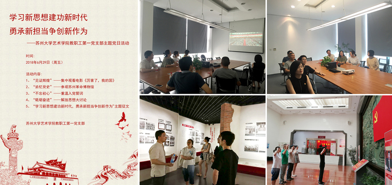 2018年7月,艺术学院教职工第一党支部开展“学习新思想建功新时代,勇承新担当争创新作为”主题党日活动,在观看“厉害了,我的国”爱国影片、参观苏州革命历史博物馆、重温入党誓词、进行解放思想大讨论后,支部还以征文的形式号召党员同志记录与表达活动心得体会。现选登部分同志文章,供支部继续交流讨论,进一步深化思想。