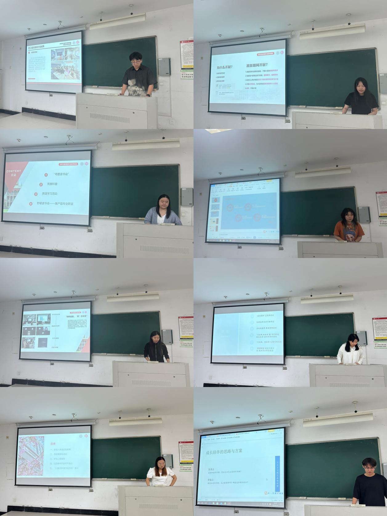 会议进行第二项,八位成长陪伴导生结合过去一年的学习工作经历,从学业、生活、学科竞赛、职业生涯规划等多个方面内容进行工作总结汇报。