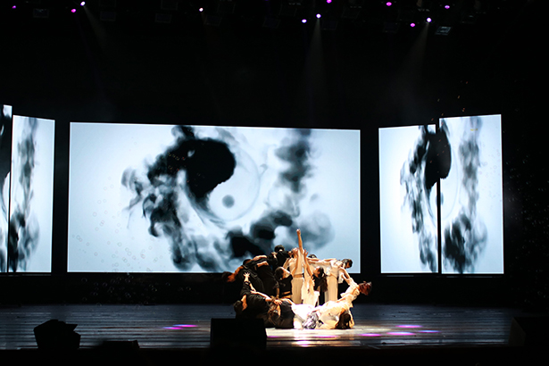 首先出场的是文学院同学的《光影黑白》,在他们酷炫亮眼、色彩变幻的灯光秀配合节奏激烈、振奋精神的音乐中,大赛正式拉开了帷幕,同学们热烈的欢呼声点燃了全场气氛。