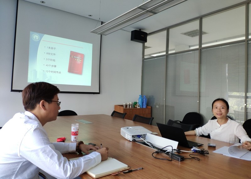 魏欣颋老师通过PPT课件,形象生动地带领大家学习了一名申请入党的学生发展成为一名党员所需要的流程及要求。在学习的过程中,各支部书记就自己支部现存的一些问题积极地参与讨论和提出解决方案。