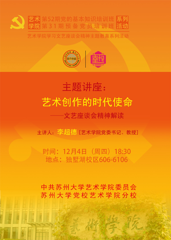 海报:艺术学院第52期党的基本知识培训班、第31期预备党员培训班专题讲座