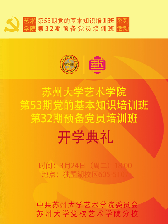 海报:艺术学院第53期党的基本知识培训班、第32期预备党员培训班开学典礼