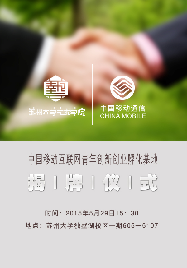 海报:艺术学院与中国移动共建“中国移动互联网青年创新创业孵化基地”揭牌仪式