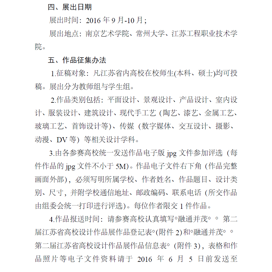 省教育厅办公室关于举办“融通并茂——第二届江苏省高校设计作品展”的通知
