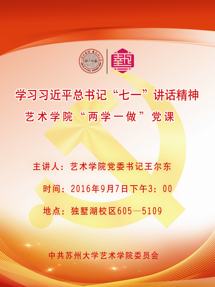 海报:学习习近平总书记“七一”重要讲话精神艺术学院“两学一做”党课