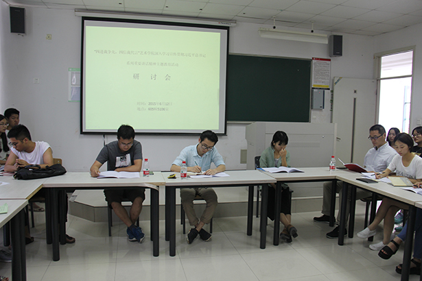 2015年6月12日,艺术学院深入学习宣传贯彻习近平总书记系列重要讲话精神主题教育活动“四进我争先、四信我代言”研讨会在605—5106教室顺利召开。参加会议的有艺术学院副书记程晓军,团委副书记卢海栗,辅导员沈院生以及学生组织的理事级和部长级同学。会议由团委办公室主任高佳同学主持。