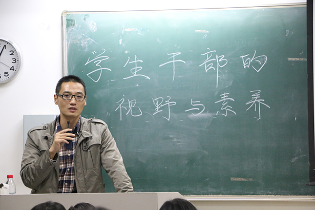 首先,程书记诠释了什么是“青年学生干部”的问题,提出了作为青年学生干部,应该拥有积极向上的心态,要明确自己作为学生干部的特殊身份,做好院校和学生之间联系与沟通的纽带。随后,程书记通过习近平总书记近两年的五四讲话总结了思想政治素养、理论与实践联系、创新与实干、道德修养四个重点,并向同学们做了深刻透彻的解释。程书记提出,作为基层学生干部,要具备一定的政治素质,熟知国家政治体系,以社会主义大学学生的身份为中国梦做出贡献。同时要注重培养自身的知识心理素质,以丰富的知识圆满自己的人生,以坚定顽强、冷静包容的心态做好各类沟通与表达,来获得同学信服。除了对自我的提升,学生干部还应该拥有大局观念、服务意识和参与意识,不为自己谋私利,时刻牢记自己所代表的学生群体,尽好表达学生群体意愿的义务,为集体争取更广阔的空间和更好的后勤保障,以帮助群体取得进步。在创新与创业方面,程书记提出要学习过往经验,打好基础,做好充分准备,才能具备创新的勇气,使活动和工作更加丰富多彩,更加圆满。最后,程书记叮嘱各位学生干部要具备良好的社会公德,兼备谦虚、合群的优秀品质,培养自己的领导能力,用自己的实际行动感染周围的人从而得到认同,最终实现个人和集体的顺利发展。