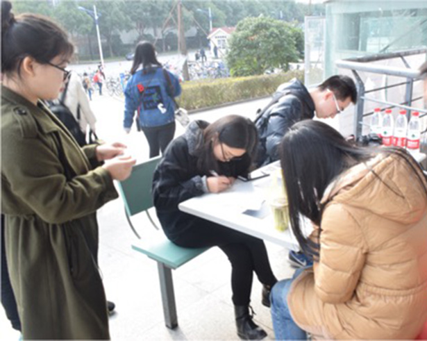 “点亮微心愿·暖冬共圆梦”活动,目前在线上线下已顺利开展。线上就是通过微信推送再转发,让更多的同学了解此次活动并呼吁他们参加到活动中来;线下就是通过在人多的食堂楼下摆摊,进行明信片交换,将同学们写好的明信片和空白的明信片寄给孩子们。在组织人员们的呼吁下,过往的同学们都很积极的参加。本次活动还联合了于12月19日由艺术学院布艺社在605教室举办的“爱心编织”活动,将布艺社的社员和前来参加活动的志愿者们一起编织的围巾和明信片一起寄给孩子们。