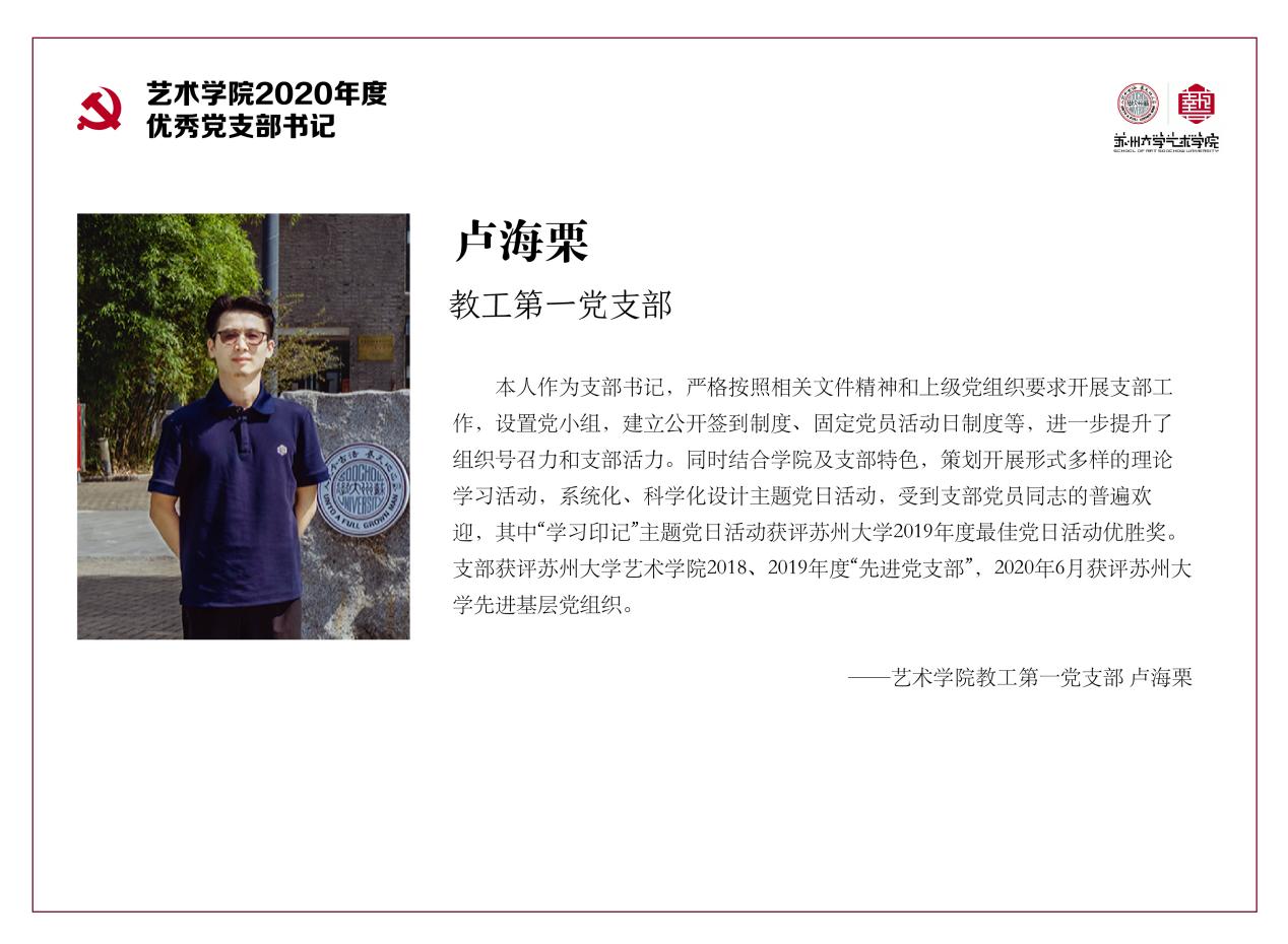 艺术学院2020年度优秀党员、优秀党支部书记、先进党支部事迹简介