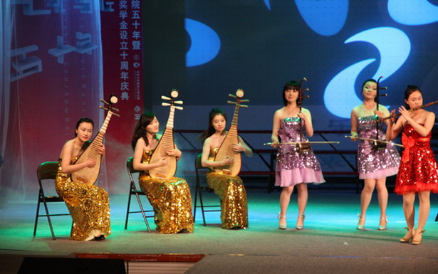 开幕仪式结束后,在场的观众又欣赏了“岁月如歌——苏州大学艺术学院建院50周年文艺演出”。艺术学院同学们以时装T台秀、民乐演奏、独舞、女生二重唱、大合唱等各种形式表达自己对学院50华诞的祝福。