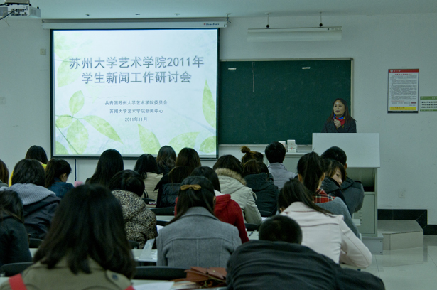 11月23日下午2时,艺术学院在独墅湖校区605-5109室召开2011年学生新闻工作研讨会。艺术学党委副书记、副院长陶培之老师,艺术学院团委书记虞岚老师出席本次会议。学院团委副书记伍承欢同学,院团委办公室主任李登科同学,学院各学生组织负责人以及艺术学院新闻中心全体成员参与了会议。会议由艺术学院学生工作助理卢海栗主持。