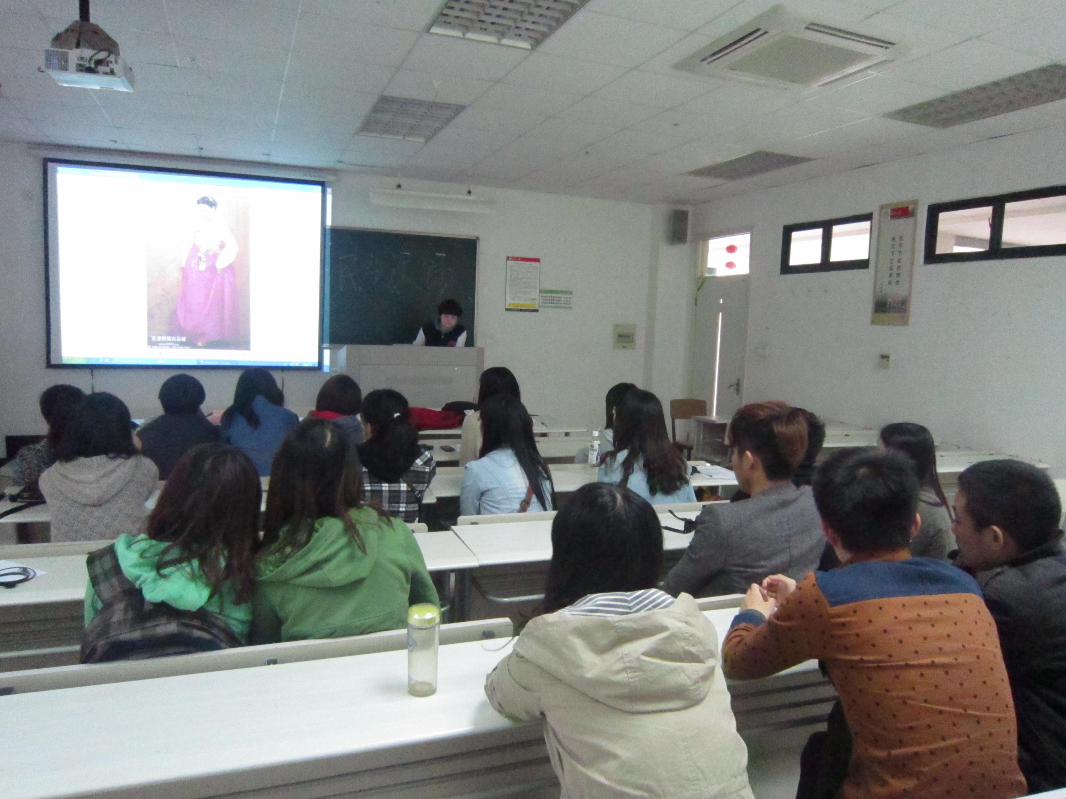 首先社长对此次活动进行介绍。社长搜集了不同服装面料,并通过PPT和面料展示对社员进行面料的初步介绍。展示的面料是由服装社成员从浙江柯桥镇面料市场采购来的。接着整个服装社分为四组对朝鲜族、满族、彝族、苗族等不同民族的服装服饰的调研进行展示,服装面料作为服装三要素之一,不仅可以诠释服装的风格和特性,而且可以直接左右服装的着装色彩,造型表现效果。“服饰是人类文化的显性表征”,联系不同民族的不同服饰,这一命题具有生源的意义。