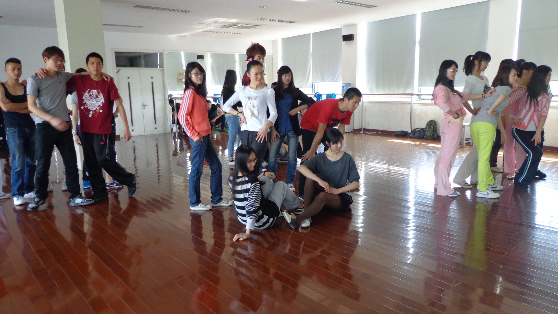 15号苏州大学艺术学院业余模特大赛告一段落,4月17日进入决赛的四十名同学便进入了紧张的赛前训练培训.这次是在601形体房进行的,由戴感老师对其进行形体训练.