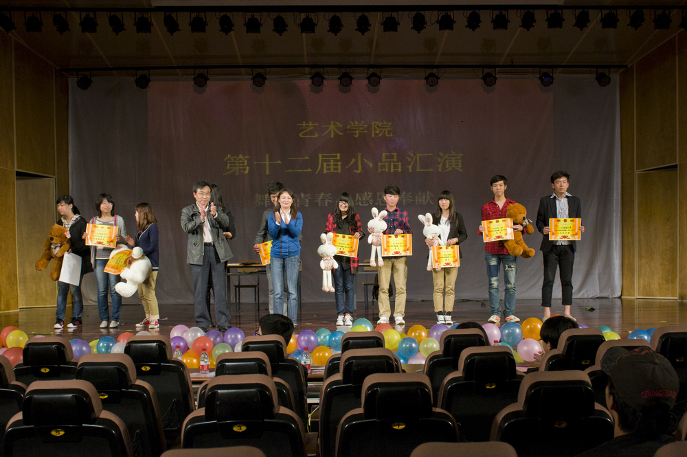 4月25日晚18:00,艺术学院十二届小品汇演决赛在601音乐厅火热开赛。艺术学院党委书记宁正法老师,艺术学院党委副书记、副院长陶培之老师,艺术学院学工办主任、学生党总支书记束霞平老师,艺术学院团委书记、学生党总支副书记虞岚老师以及艺术学院11级班主任代表出席了本次活动并担任大赛评委。此外,参加本次活动同时参与评审的还有艺术学院辅导员助理谭颖、张晶、卢海栗老师,学院团委副书记伍承欢同学,11级班主任助理孙陈亚、张国凯同学,东吴剧社许捷、戴晟同学,英语短剧大赛校决赛最佳女主角及独墅湖十佳歌手徐聪同学。