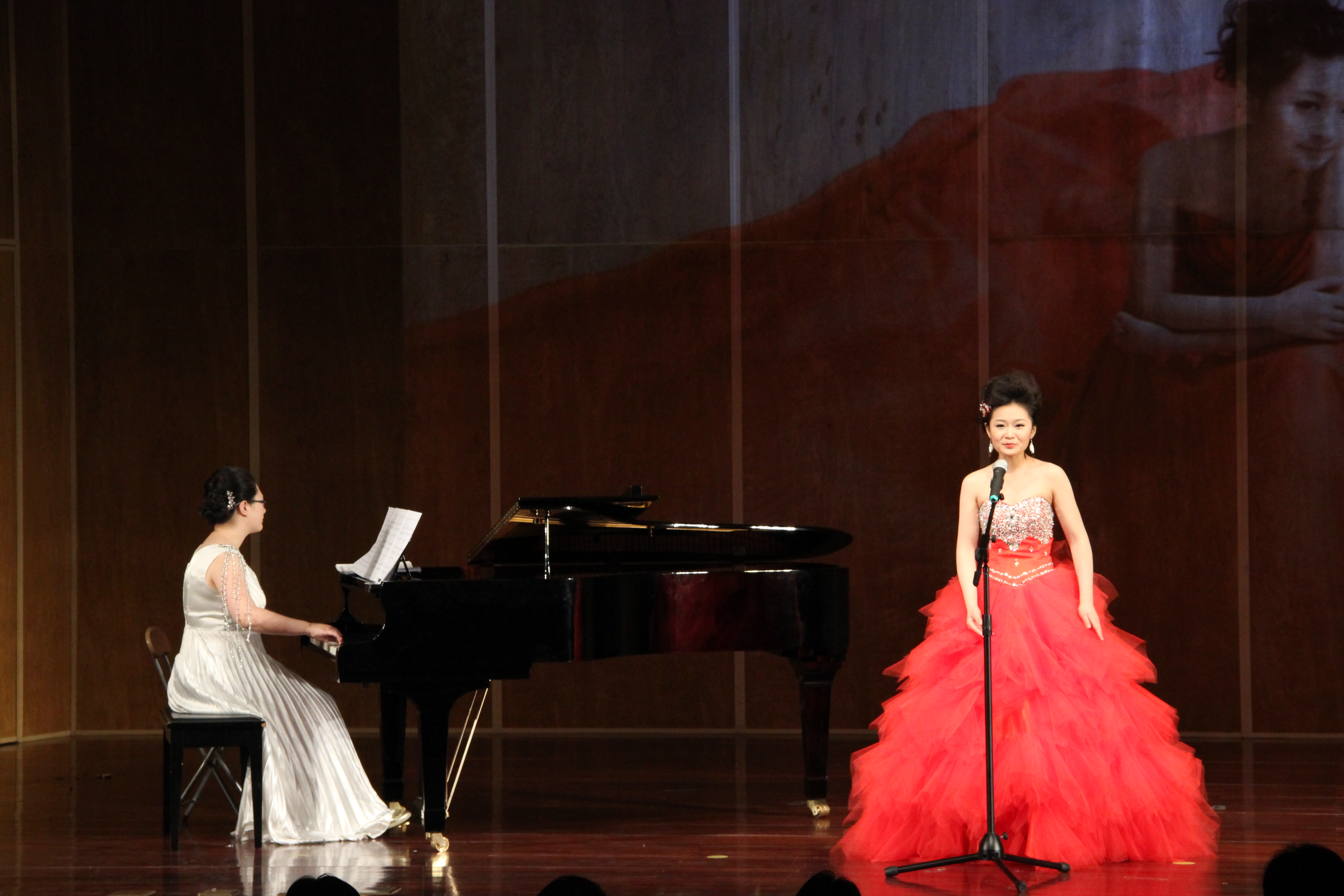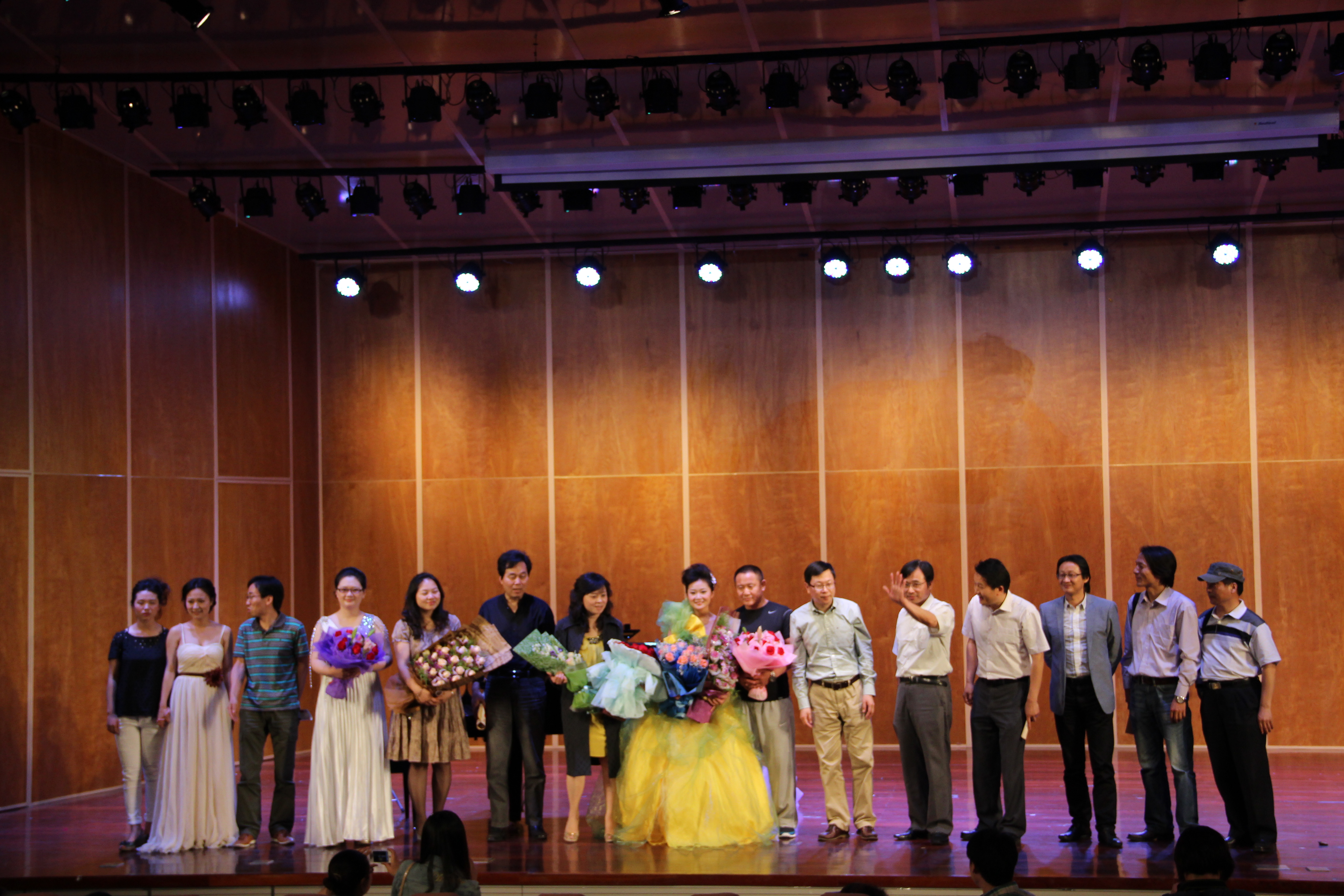 今晚的主角孟竺正式登台,演出开始了。在音乐会上孟竺同学为大家精彩的演唱了普契尼的《主人请听我说》,雷哈的《风流寡妇》,德沃夏克的《水仙女》,以及《节日欢歌》和《天蓝蓝》等等,让人如痴如醉。当孟竺到约翰斯特劳斯的《笑之歌》时,把音乐会推向了高潮。在流畅的琴声中,孟竺不仅把观众们带入了不同时期古典音乐的殿堂,也让大家看到了孟竺对音乐的热爱。台下的观众告诉记者,孟竺这次音乐会的成功是她平时勤奋努力的结果。五、六月可以说许多学生们的毕业季,在这样特别的日子里,大家都会以各种各样的形式来度过这个难忘的时刻。在唱到最后一首歌曲《老师我总是想起你》时,孟竺同学中途声音哽咽,望着台下的恩师张红霞教授流下了感激的泪水。这次个人独唱音乐会,不仅仅是一场毕业汇报音乐会,更多的是她对大学四年来老师的指导和学校给予的帮助的感谢。
