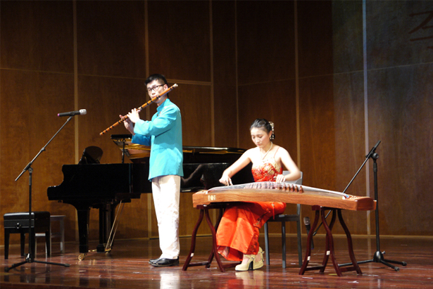 5月29日下午18:30,苏州大学艺术学院601号楼音乐厅灯火璀璨,丝竹声盛,学院音乐系首场民乐音乐会——“笛鸣筝韵”音乐系09级李沁栩、赵纯同学竹笛、古筝联合音乐会精彩上演。艺术学院副院长顾德学,院党委副书记、副院长陶培之,院团委书记虞岚,音乐系主任刘跃华,系副主任李长松以及音乐系全体教师出席并观看了此次音乐会。