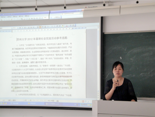 接着,就《关于实施艺术学院2012年大学生暑期社会实践自主创意实践团立项资助计划的通知》 、《艺术学院2012年暑期社会实践活动重点团队成员招募通知》、《关于实施艺术学院2012年暑期社会实践援助金计划的通知》卢老师在会上也作了简单陈述。