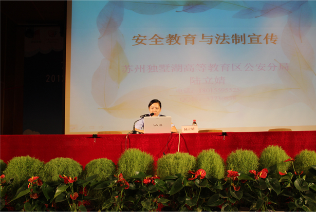 8月30号上午,艺术学院和教育学院联合邀请到苏州独墅湖高等教育区公安分局警官陆立婧为两院2012级新同学带来了一堂生动的安全教育与法制宣传讲座。