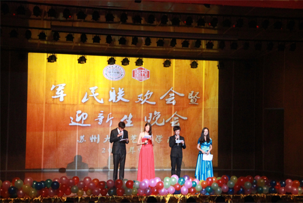 2012年9月12日晚6:30,苏州大学艺术学院军民联欢会暨迎新生晚会在艺术学院601幢音乐厅隆重举行。学院党委副书记、副院长陶培之老师,院团委书记虞岚老师,院教务办公室、新生班主任代表张慧子老师出席活动,院各学生组织代表,部分老生代表以及学院2012级本科全体新生参加了晚会。
