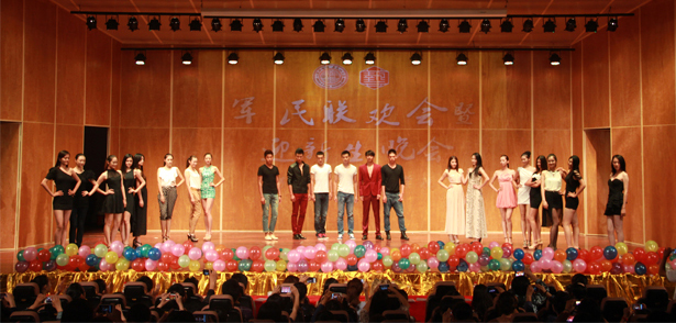 晚会在由12级时装表演班选送的开场热舞中正式拉开帷幕。节目异彩纷呈,现场气氛火爆。歌曲串烧让整个会场沉浸在一曲曲轻松灵动的歌声里;钢琴四首联弹《军队进行曲》中蕴含着学子们的军旅生活感悟和对军人刚毅精神的敬佩;自弹自唱、热舞串烧、中西乐器合奏、相声、民歌等一次次将让会场欢呼不断、掌声雷动;老生代表也通过在节目中的热情表演表达了对2012级新同学的欢迎;最后,12级时装表演班活力四射的T台秀更是将晚会推向了高潮。