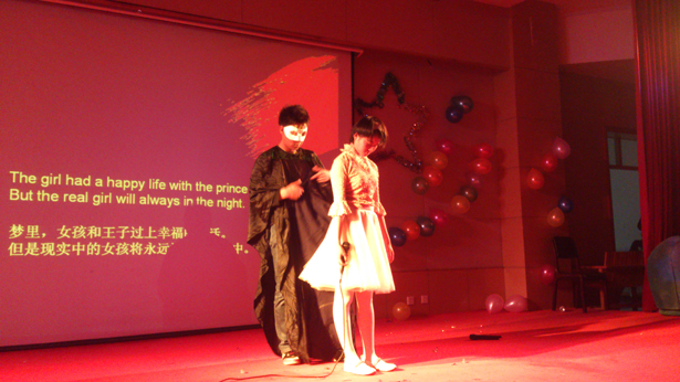 2012年10月30日晚18:30,独墅湖校区2012届新生英语短剧大赛半决赛在医学部4楼拉开帷幕。艺术学院选送、12美术教育班表演的节目《The other side of reality》以精彩表现获得大赛二等奖,丁梦丹同学被评为全场最佳女演员。
