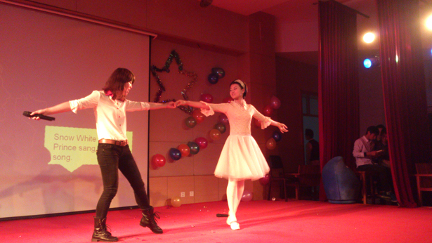 短剧《The other side of reality》,改编自经典童话故事《白雪公主》,短剧讲述了一个平凡的女孩沉溺于梦神为她编织的白雪公主的梦境,不可自拔,不愿面对现实的故事。该剧深刻地揭示了当下年轻人沉迷幻想,荒废现实生活的现象。他们出人意料的结尾让在场观众惊奇不已,白雪公主在剧末的独唱更是惊艳全场,赢得了热烈的掌声。