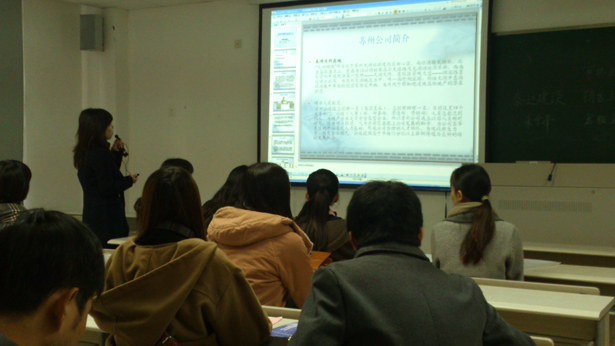 据悉,这些公司在苏州乃至全国各地都很有影响力,其子公司遍及广泛。开始各公司的代表分别就其企业宗旨、理想、定位、核心价值观、内部的架构、文化作了一番详细的介绍,表示应届生是公司的新鲜血液,更具创造力和活力,非常看重毕业生的奉献精神和协作精神,希望能挑选出符合公司标准的人才,为其公司带来经济效益。宣讲完后,参聘的学生对中意的公司提出了自己的疑问,还和应聘人员进行面对面的交流。他们进一步了解公司的招聘岗位及要求,谨慎地思考并向适合自己发展的公司投出了简历。