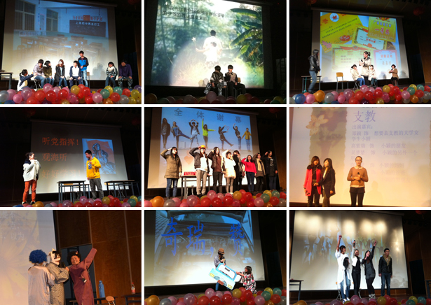 大赛伊始,主持人首先向大家介绍了莅临指导的评委老师,并就表演技巧、舞台形象、主题思想等评分要点加以强调,明确表演方向。接着,来自全院的12级各个班级轮番上阵,尽情挥洒青春的激情与活力。首先上场的是12级美术教育班表演的《青春与责任》,他们用深情的演出及灵动活现的肢体语言,使得全场笑语不断。随后,12级染织艺术设计班为大家带来了一个寝室的四个“控”的故事,有花痴“控”、动漫“控”、音乐“控”、还有一个“宅”,她们滑稽搞笑的表情,加上各类舞蹈,博得现场掌声阵阵。更有一些独具创新精神的演员将各类形式的人物与剧情完美融合、特色明显。演出寓意深远,生动活泼,带给观众无尽的思考和欢乐……