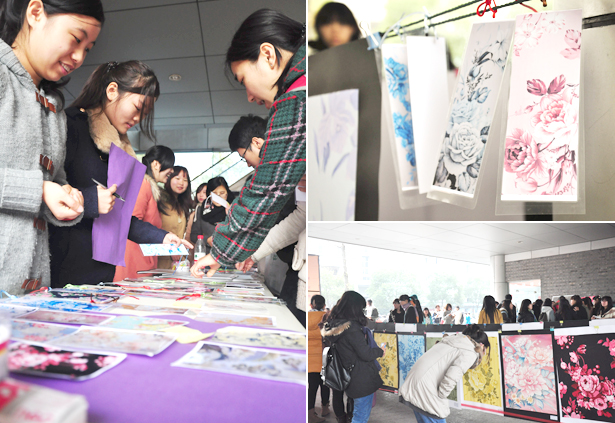 2012年12月14日星期五,艺术学院11级染织班在独墅湖校区的一、二食堂楼下举行了以“献一份爱心,暖一颗心”为主题的重要团日活动。活动的主要内容是班级作品展示和义卖自制挂历、台历、明信片、书签等,其所得的善款将捐往贫困山区小学,圆山区孩子热切的读书之梦。