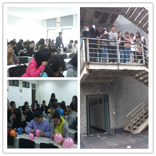 而后,室外动手题向每人提供一张纸和一个鸡蛋,要求用纸折成任何形状裹住鸡蛋,完成后从二楼往下丢,按鸡蛋不破者选前3-5名,时间越短,纸张越少可加分。最后,这“全副武装”的鸡蛋都有不同程度的破裂,根据鸡蛋的破裂程度和加分情况,11环艺张智程、11美教赵喜林、12环艺吴哲文和郭玉娱晋级校级智慧之星比赛。