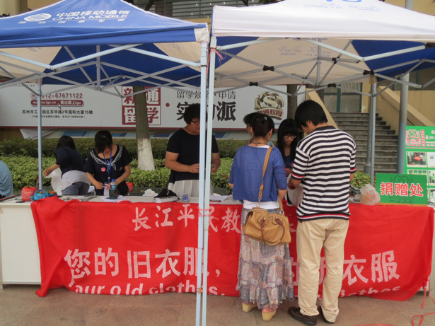 2013年5月25日星期六,苏州大学艺术学院青年志愿者协会与西交利物浦大学乐美慈善社在文星广场协手举办了一次爱心捐赠活动,本次活动主要接受捐赠对象是新旧衣物。主办单位是长江平民教育基金会。