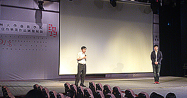 到了上午10时许,振奋人心的服装设计展演在二楼音乐厅进行。出席本次活动的嘉宾有艺术学院党委书记宁正法,艺术学院党委副书记、副院长陶培之,艺术学院团委书记虞岚,学院里各年级的同学也纷纷闻声而来,活动由09级服装表演班陆珀主持。