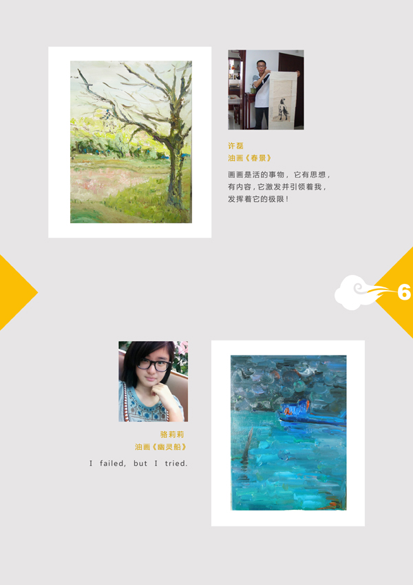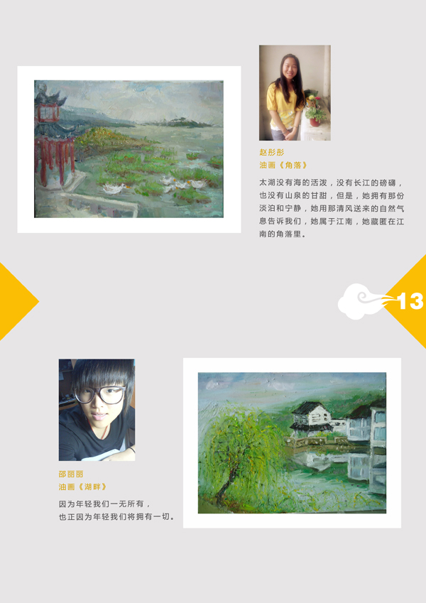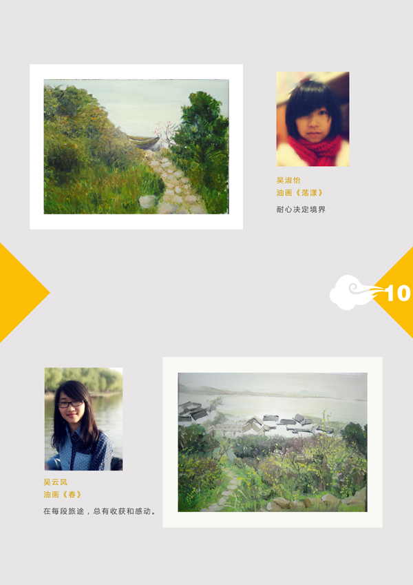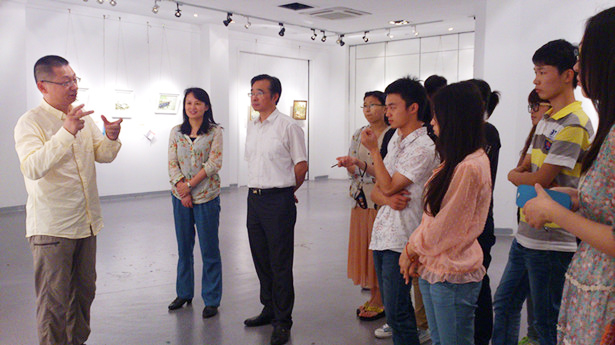 6月10日——6月17日,艺术学院12美教班“寻梦”太湖写生油画作品展在601幢一楼展厅举行。本次太湖写生由学院美术系刘昌明教授带领并指导,展览活动系12级美教班首次展览、班级重点团日活动、艺术学院“大学风向标2013成长季”系列活动之一,吸引了同学前来观摩。画展也受到了学院领导老师的关注和重视,6月11日14:30,艺术学院党委书记宁正法,艺术学院党委副书记、副院长陶培之,艺术学院专业教师戴家峰以及院团委书记虞岚、院团委卢海栗均到场参观指导。