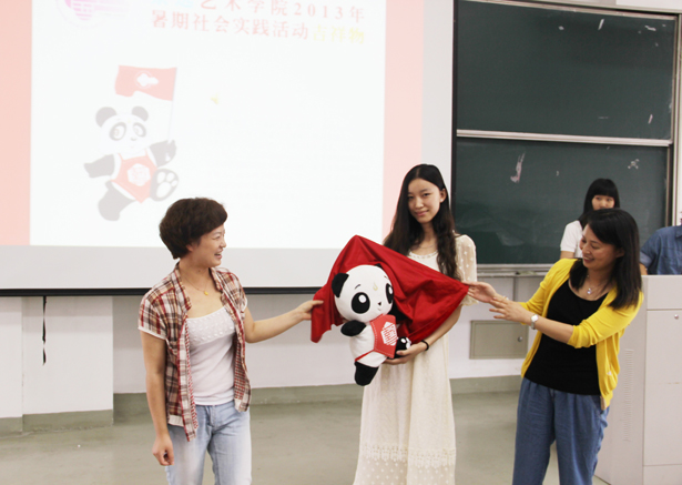 仪式上,顾冰董事与陶培之副书记共同为学院2013年暑期社会实践活动吉祥物“乐乐”揭幕。“乐乐”又将以新的面孔作为形象大使在暑期和同学们一起践行文艺下乡、惠寒支教、学以致用等服务承诺,将祝福与爱心带往全国。