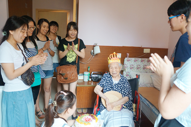 在接下来的几天里,同学们还给老人们带来了其他丰富多彩的节目,其中包括魔术,合唱,包饺子。尤其开心的是,在活动的这几天里,恰逢一位老人百岁,大家很荣幸可以为这位百岁老人庆生,同学们特地买来蛋糕,大家一同庆祝,场面其乐融融,老人们笑意盈盈的沉浸在满满的祝愿中。