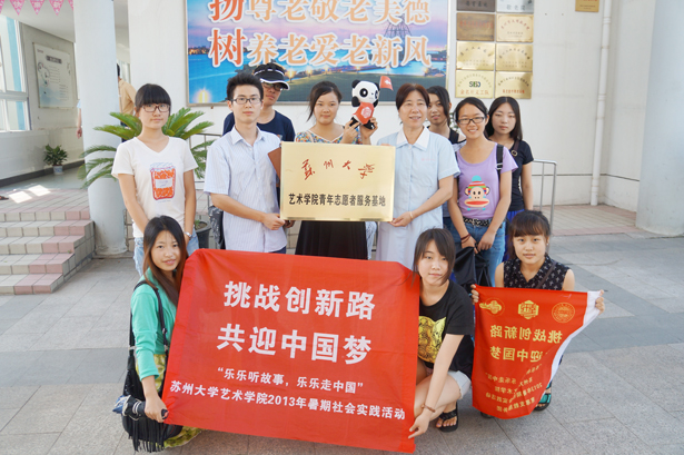 7月9日上午,艺术学院青年志愿者服务基地挂牌仪式在苏州市娄葑镇老年公寓举行,标志着娄葑镇老年公寓这一青年志愿者服务基地正式建立与启动。7月4日—9日,艺术学院暑期社会实践“青春温暖志愿服务分队”在此开展了一系列的实践与服务活动,为平静的老年公寓带去了阵阵的欢声笑语,增添了别样的生趣,受到老人们的喜爱与欢迎。为推进活动的稳固与长效,艺术学院团委与娄葑镇老年公寓达成共建青年志愿服务基地的协议。