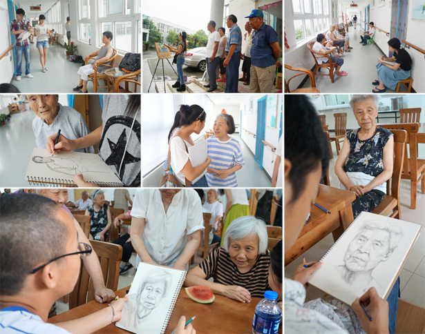 节目结束后,学生们还发挥专业技能,现场帮爷爷奶奶们画肖像。休息之余,同学们还抱来西瓜陪他们聊天,讲解一些养生知识。在盛夏为老人们送去丝丝的凉意,给老人们带来喜悦和感动。
