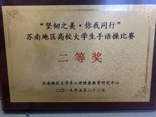 2019年5月22日下午,苏南地区高校大学生手语操比赛在苏州工业园区服务外包学院顺利举行。本次比赛是由苏南地区大学生心理健康教育研究中心主办,苏州工业园区服务外包职业学院承办。艺术学院参赛作品《我是真的很不错》代表苏州大学参赛,荣获二等奖的好成绩。