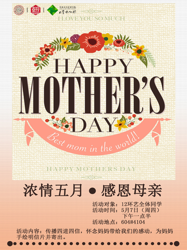 海报:“浓情五月·感恩母亲”——12环艺5月重点团日活动